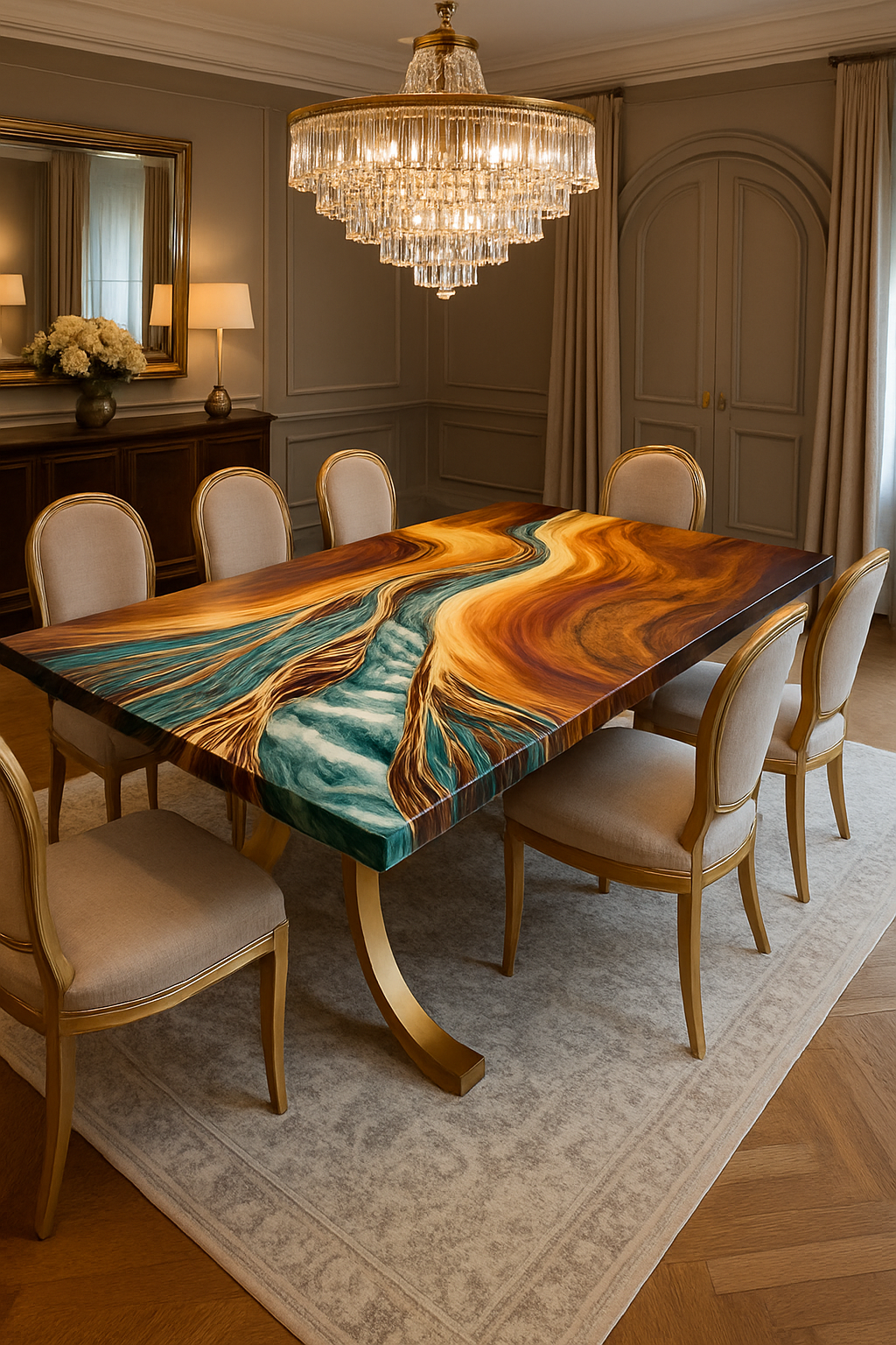 An artistic statement piece perfect for modern homes, creative offices, or design-forward interiors. Each table is a one-of-a-kind creation, blending fine art with masterful craftsmanship.