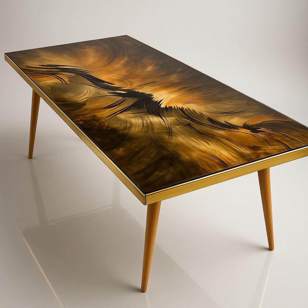 This dramatic handcrafted table captures the energy of a swirling firestorm. Made with high-quality epoxy resin, its surface bursts with movement—each layer of golden ambers, smoky charcoals, and glowing highlights is hand-painted by a professional artist to create a powerful, dynamic visual effect. The result is a bold centerpiece that evokes the raw beauty of nature through abstract design.